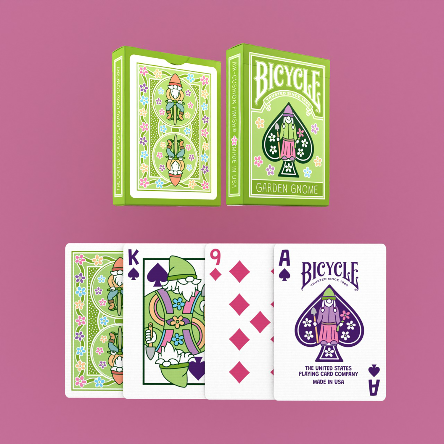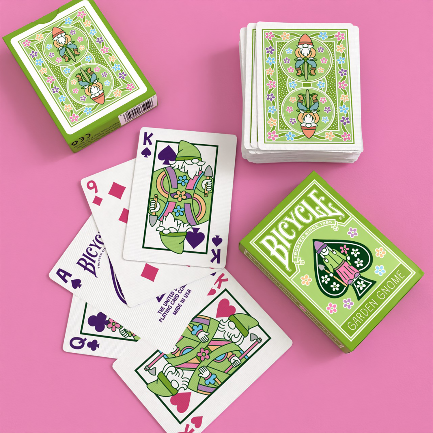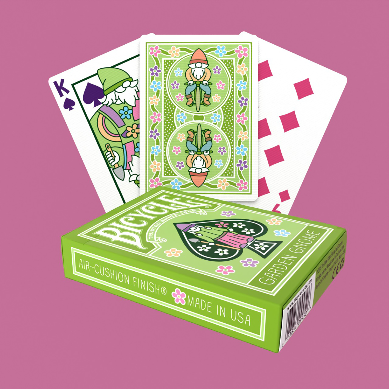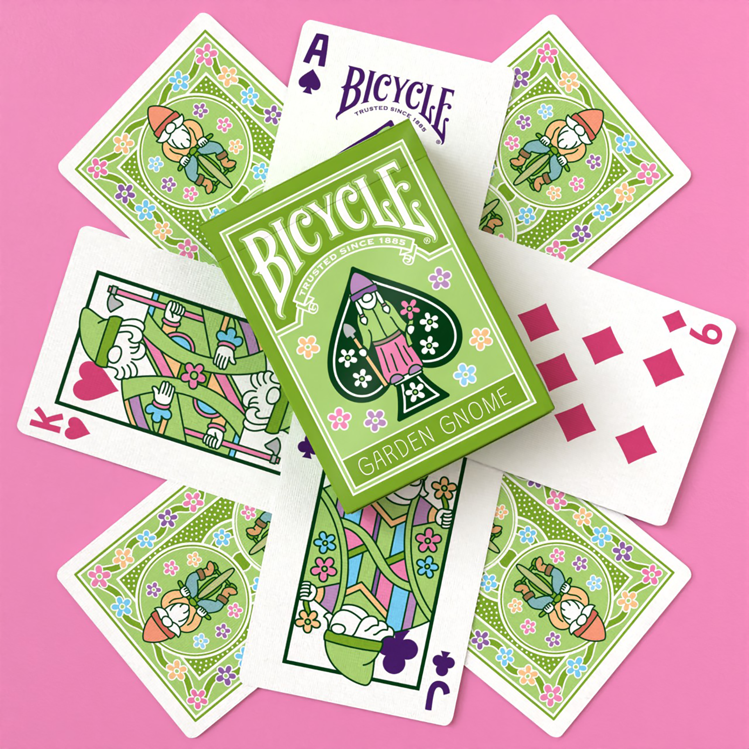 Verleihe deinen Spielrunden mit den Bicycle Garden Gnome-Spielkarten einen Hauch von Folklore!